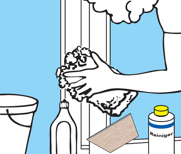 Die optimale Fensterpflege erreichen Sie, wenn Sie die Fensterrahmen und Dichtungen bei jeder Scheibenwäsche reinigen. Verwenden Sie hierzu ein mildes, scheuermittelfreies Reinigungsmittel.