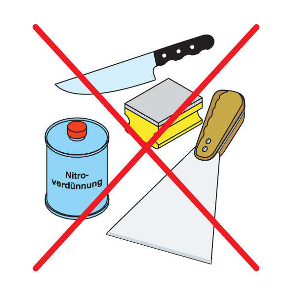 Gips–, Mörtelreste oder Ähnliches entfernen Sie am besten mit einem Holz- oder Kunststoffspachtel.